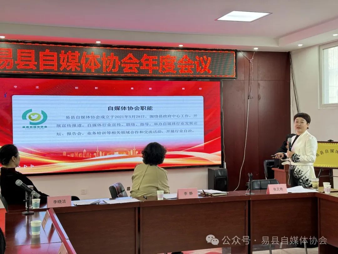 张灵艳会长作“易县自媒体协会工作总结暨2024年工作计划”。