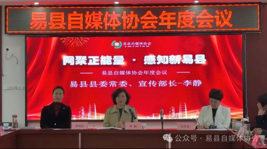 易县县委常委宣传部长李静、易县网信办主任李晓洁、易县自媒体协会会长张灵艳出席了此次会议。