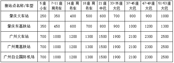 2.根据不同接站点及车型收取相应费用,单程标准如下