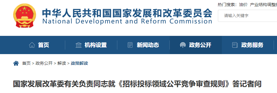 作为具体领域和行业性公平竞争审查的首部部门规章,《规则》严格对标党中央、国务院关于优化招标投标市场环境的决策部署,有机衔接《公平竞争审查制度实施细则》等现有制度,紧密结合招标投标市场特点和关切,细化实化招标投标领域公平竞争审查的审查标准、审查机制和监督管理等内容。