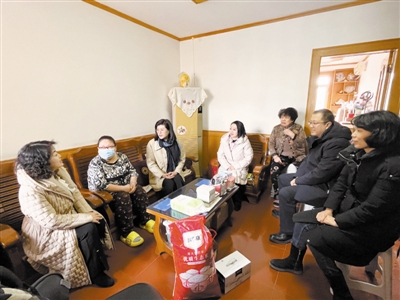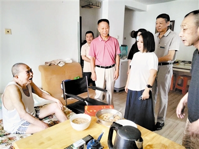 于宝云(右二)代表慧德公益协会看望滨海新区塘沽街道困难退役军人。