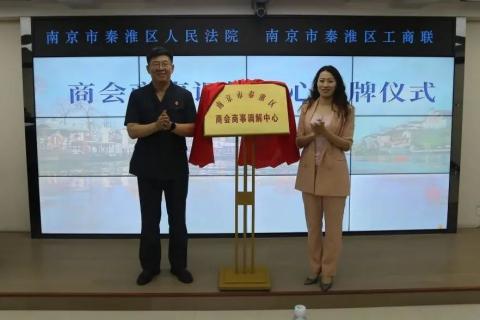 区政府副区长、区工商联主席咸敏,区法院党组书记、院长周守忠为秦淮区商会商事调解中心揭牌。