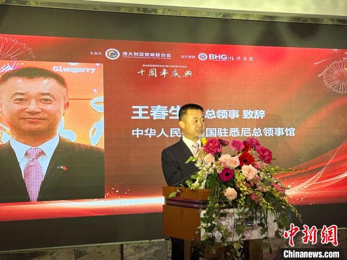 王春生致辞表示,澳大利亚楚商会和澳大利亚湖北联谊会成立10周年来,以乡情为纽带,传承发扬楚商历史文化和楚商精神,为促进澳大利亚经济社会发展和中澳友好发挥出积极作用。他希望在下一个10年里,澳大利亚楚商会和澳大利亚湖北联谊会以及广大新州侨胞一起做中澳友好的促进者、推动者,为促进中澳各领域交流合作继续发挥桥梁和纽带作用。