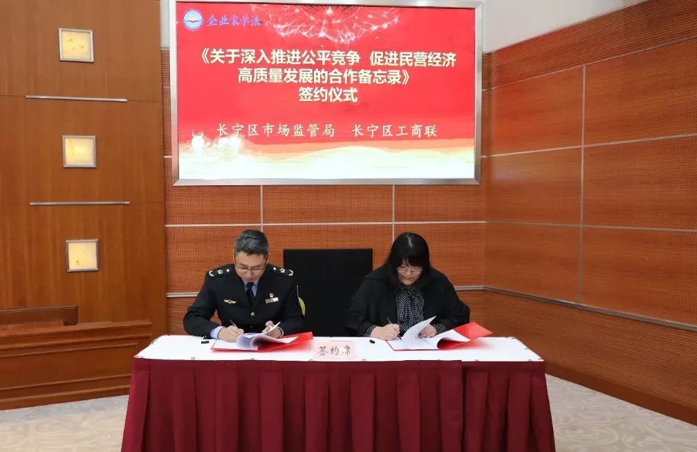 会上,区检察院和区工商联为长宁区中小企业合规管理体系创建活动举行启动仪式。区市场监管局和区工商联共同签订《关于深入推进公平竞争促进民营经济高质量发展的合作备忘录》。