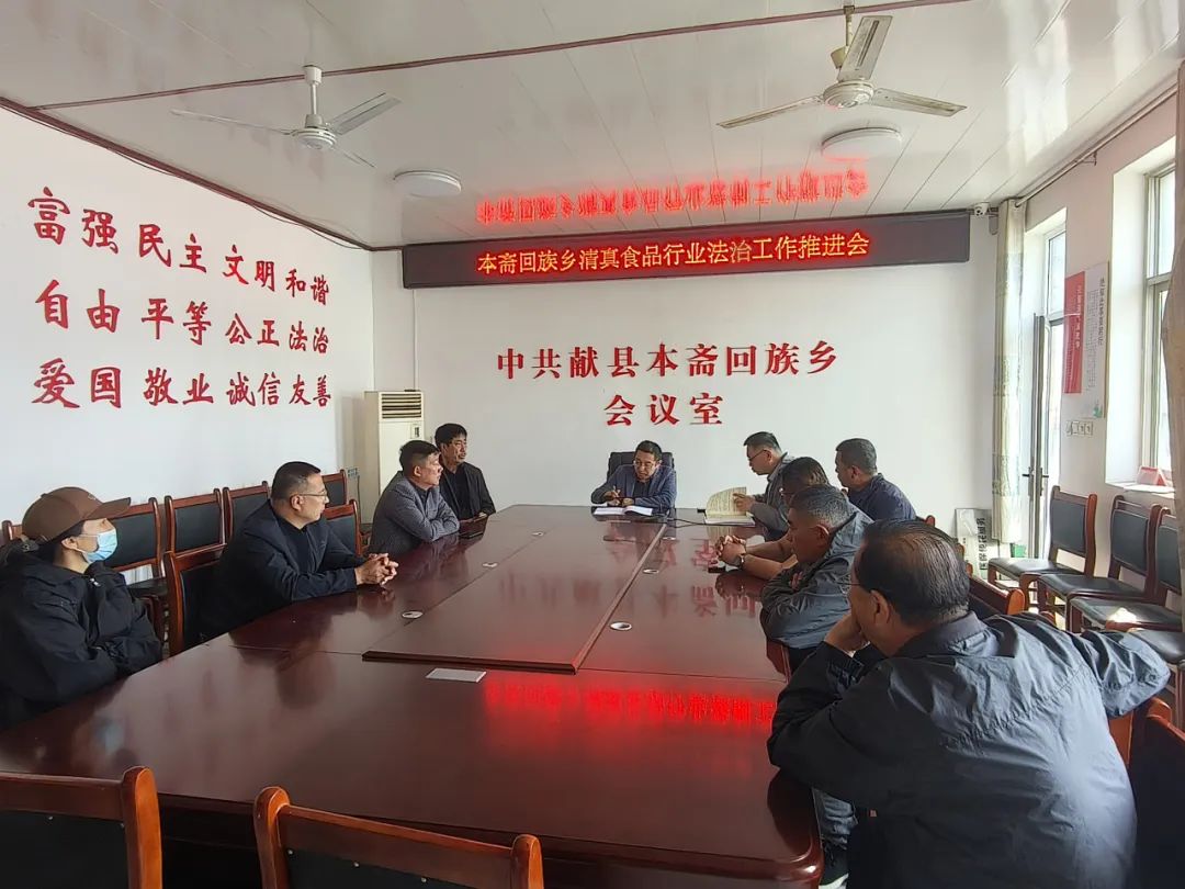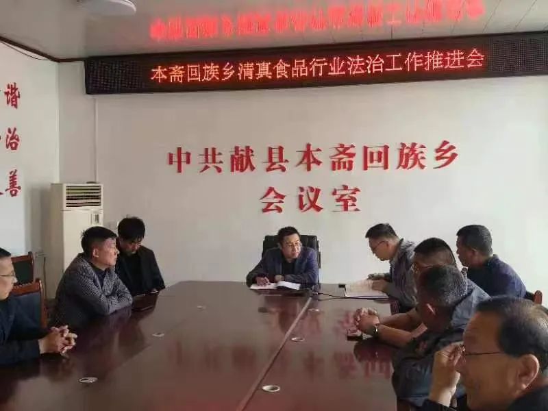 4月11日,献县人民法院本斋法庭庭长陈春雷联合本斋乡政府副书记张聪、乡司法所所长曹树轩、本斋东村、西村村干部、献县清真肉类食品行业协会会长及部分会员,在乡政府召开本斋回族乡清真食品行业法治工作推进会,会议由张聪副书记主持。