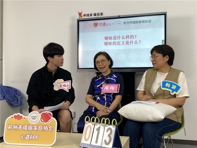 近日,心遇交友app和杭州市婚姻家庭协会联合举办了第十三期《婚恋36计》专题讲座,邀请婚恋与心理专家再次针对“异地恋”话题进行了分享。杭州婚姻家庭协会作为专业的婚恋公益组织,提供与婚恋相关的心理咨询、法律等公益服务。本期节目邀请到杭州市婚姻家庭协会会长陶陶老师,以及杭州市婚姻家庭协会副会长杨波老师。陶陶老师是原杭州市妇联权益部部长,从事婚姻家庭咨询服务20余年;杨波老师是二级心理咨询师,有丰富的婚恋心理咨询经验。两位专家就“暧昧期”产生的各种问题做出了专业解答,为爱情中有困惑的婚恋男女答疑解惑。