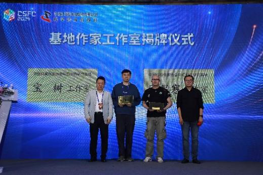 随后,举行了基地作家工作室揭牌仪式。邱华栋书记和刘慈欣院长为宝树工作室和萧星寒工作室揭牌。至此,科幻基地已经为16位作家成立了工作室。