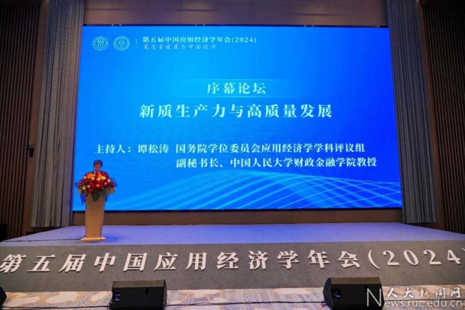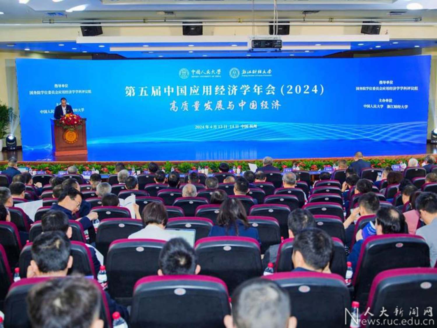 4月13-14日,在国务院学位委员会应用经济学学科评议组的指导下,由中国人民大学联合浙江财经大学主办的第五届中国应用经济学年会(2024)在杭州召开。本届年会主题为“高质量发展与中国经济”,年会深入学习贯彻中央经济工作会议精神和全国两会精神,围绕新质生产力与高质量发展、应用经济学科服务高质量发展、应用经济学自主知识体系建构与传播、拔尖创新人才培养等重要问题开展研讨交流,以期更好总结中国经济发展实践,构建中国原创性经济理论,加快推进中国应用经济学科发展。