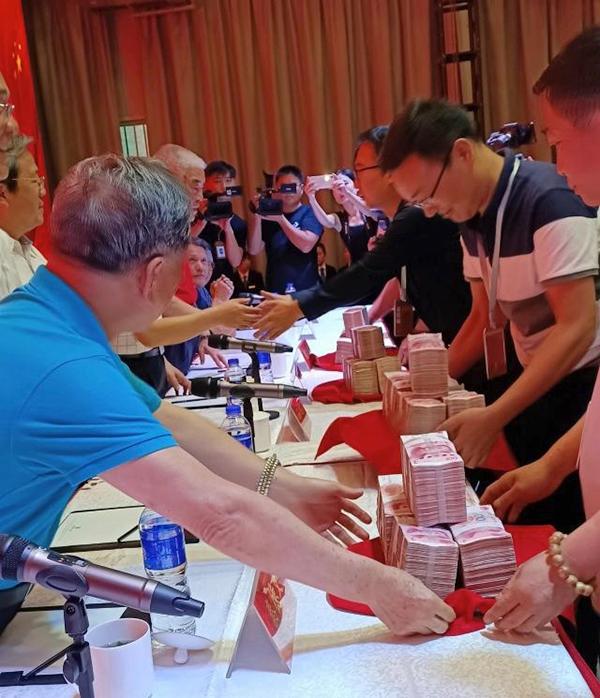 2019年,李士杰组织的首届“中国书法大厦杯”颁奖现场,以巨额现金进行发放