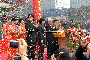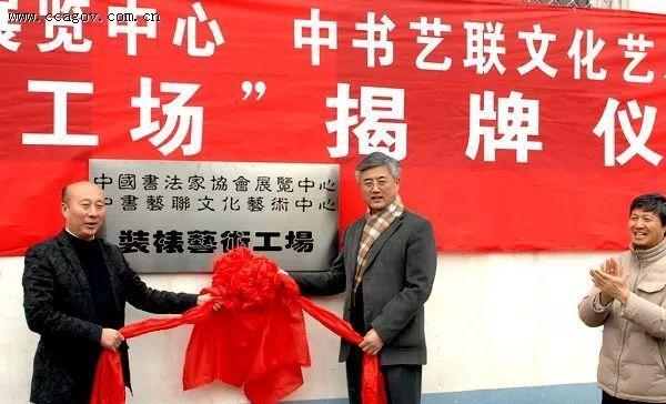 2010年3月4日,时任中国书协分党组书记兼驻会副主席赵长青(中)和中国书协理事、煤老板李士杰(左)出席揭牌仪式。