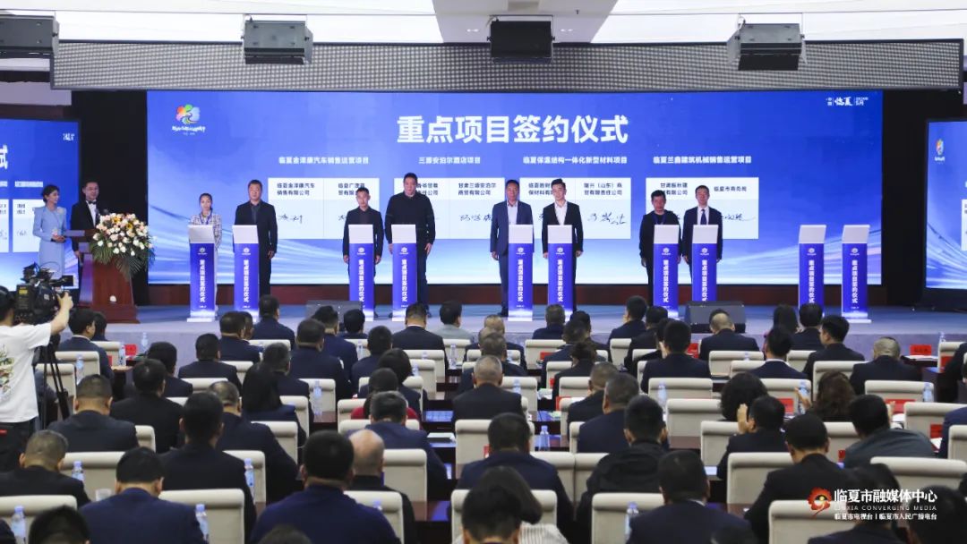 大会现场,黄河流域兰西城市群临夏州凤凰山生态修复与乡村振兴项目、明德高级中学项目、临夏市5G通信基础设施及新能源和信息化应用项目、旺翔直播基地项目、临夏市智慧城市照明泛光管理及灯具生产维护项目、临夏市人工智能数字经济孵化园等涵盖文旅、教育、花卉产业、数字经济等多个领域的项目纷纷签约落地,大家郑重签字、落笔有声,奏响了合作共赢的最美乐章。这些项目的加入,将巩固提升临夏市区域经济发展优势,推动临夏市在多领域大步前进、迅速发展。