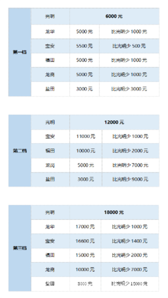 光明区VS深圳各区