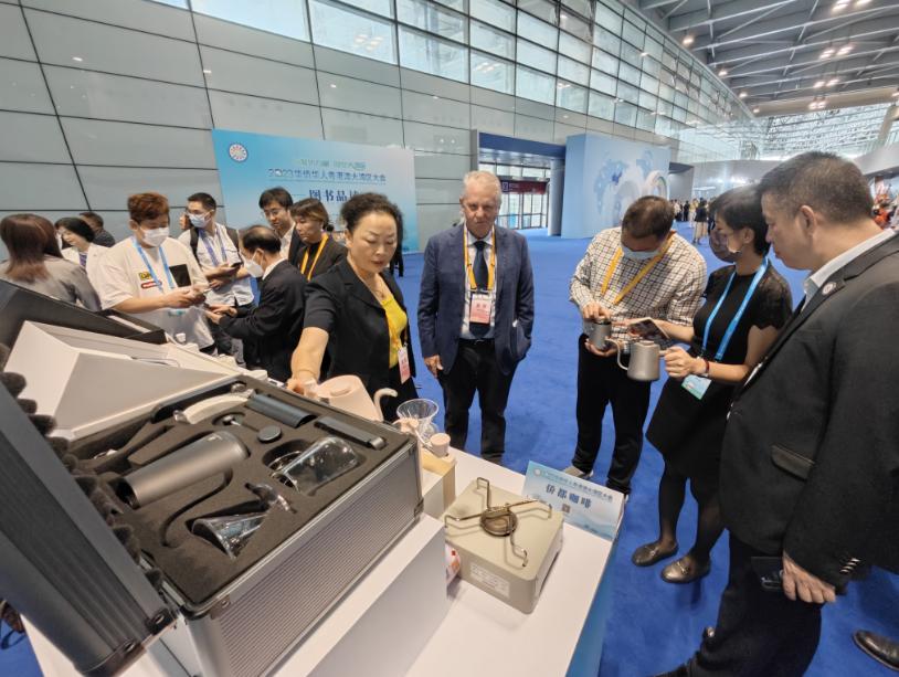 △与会侨胞与同行的外国友人参观侨都咖啡展。