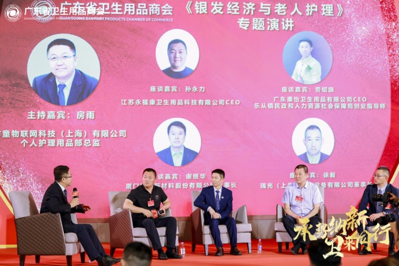 现场还举办《银发经济与老人护理》主题论坛峰会,由布童物联网科技(上海)有限公司个人护理用品部总监房雨主持,并特邀江苏永福康卫生用品科技有限公司董事长董事长孙永力、广东康怡卫生用品有限公司董事长劳绍旗、厦门延江新材料股份有限公司董事长谢继华、瑞光(上海)电气设备有限公司董事长徐毅等嘉宾,进行激烈交流与深入探讨。