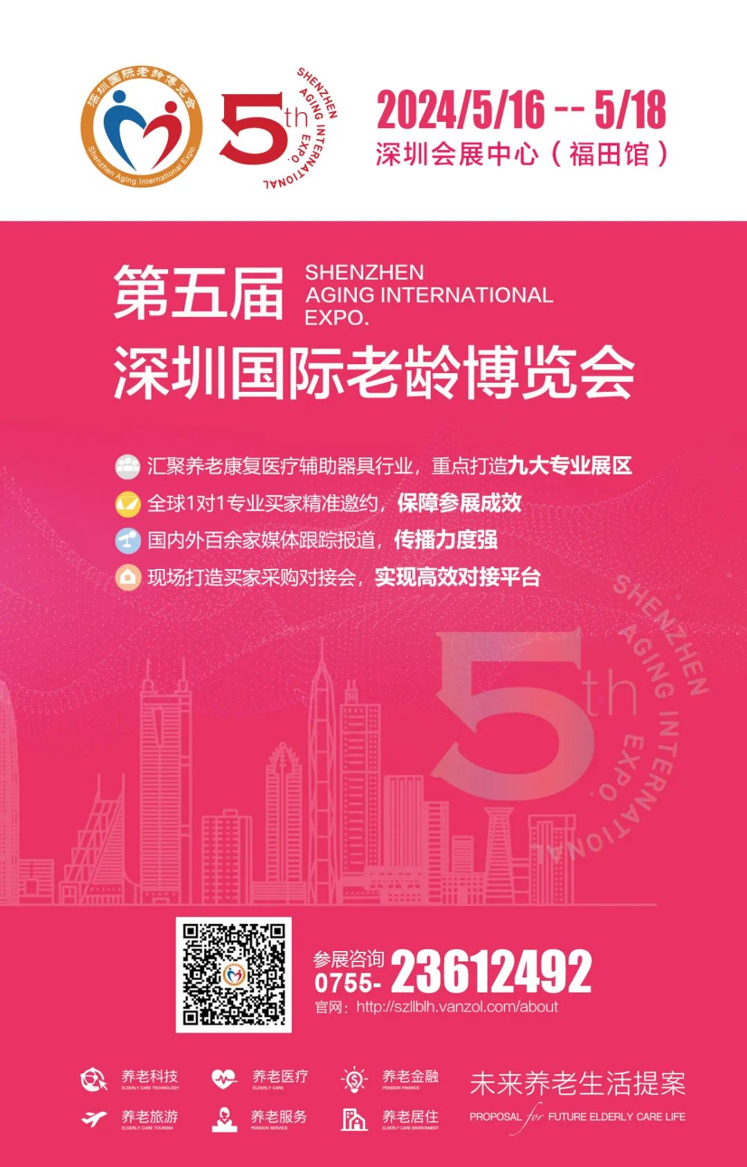 展会简介:深圳老博会是国内颇具规模的养老生活方式倡导、养老产业、康复医疗、辅助器具等领域专业展会,深圳老博会汇聚国内外400多家知名品牌集中展示,是行业新品发布的首选平台。展会开设九大展示区,即养老服务、智慧养老、养老金融、康复医疗、适老化改造、辅助器具、生活护理、健康管理。