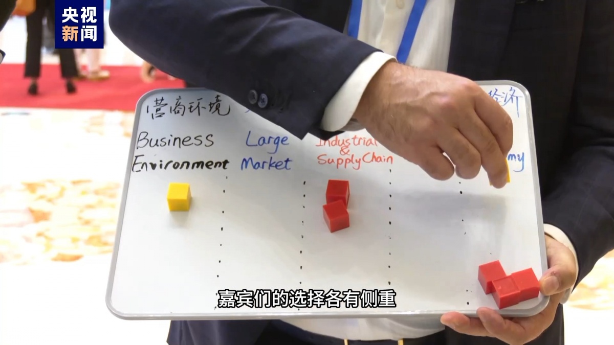 最近,有外媒称中国“产能过剩”“外资撤离”“制造业外流”……而根据商务部最新数据,今年一季度中国新设外资企业数量达到1.2万家,同比增长20.7%。外资究竟如何看待中国市场?在2024年全球贸易投资促进峰会上,来听听外国企业的心声。 总台央视记者 田琪永:本届峰会,半天时间,5场会议和论坛,40个国家和地区,170家机构,18家境外在华商协会首次实现“全家福”。为了了解他们投资中国到底看重什么,我们特别准备了一个小调查,包括了五个关键词↓ 营商环境 大市场 产业链供应链 综合成本 宏观经济 在这五个元素里,他们最看重什么呢? 中国市场哪个因素最重要? 世界贸易中心协会理事会执行委员会主席 爱德华·埃里森-怀特 显然,供应链非常重要。 南非参会企业代表 皮迪亚赛特 宏观经济,这是最主要的元素之一。 土耳其工商协会中国区会长 科尔汉库尔多鲁 公平的营商环境是最重要的一环。