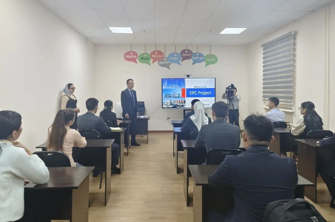 揭牌仪式当日,中国能建“鲁班工坊课堂”首场培训精彩开课,向塔什干国立交通大学学生分享中国技术和中国方案。