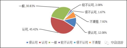 据调查数据反映,对医院信息化设备设施普及程度“较不认可”与“很不认可”的看病群众仅占3.75%,说明看病群众对医院信息化设备设施的普及程度较为认可,详见图1—5。