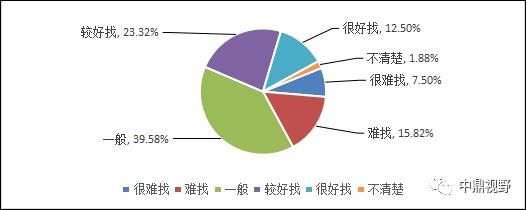 通过数据统计分析,选择“难找”以上的群众占比23.32%,说明医院在化验室、检查室等标识设置上较为合理完备,同时,医院引导分流看病群众工作还需做得更细;选择“一般”的群众占比39.58%为最多,说明群众对医院看病检查室、化验室是否好找有一定的认可度,不明显感觉难找,详见图1—4。
