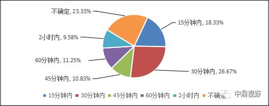 通过调查数据反映,就诊在“15分钟内”的群众仅占所有群众调查总数的18.33%, 一定程度上说明群众看病就诊频率不高,排队就诊等候时间过长,存在群众就诊“看病难”问题,详见图1—3。