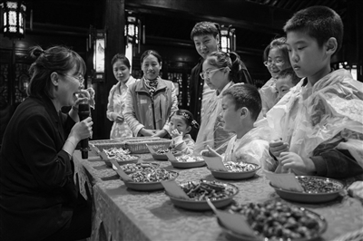 开幕仪式完成后,参与本次家庭日活动的近50组亲子家庭分为三条线路,展开“我爱我家趣走读”公益打卡行动。大手牵小手,穿梭于河坊街的历史建筑中、体验有趣的非遗手作,完成一项项打卡任务。