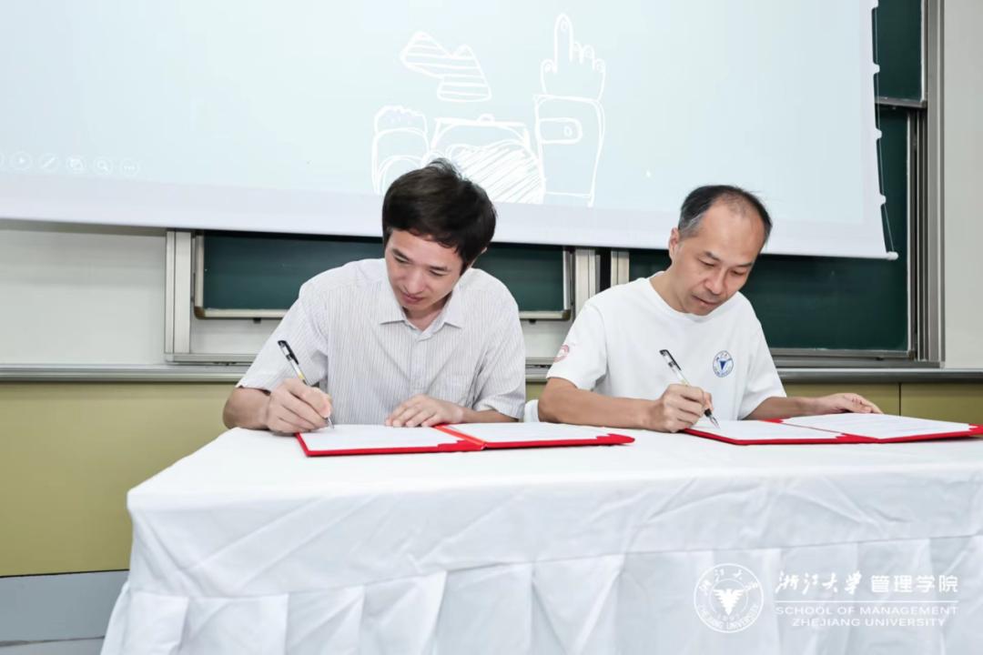 肖炜代表班级与学院党委副书记李文腾签署捐赠书