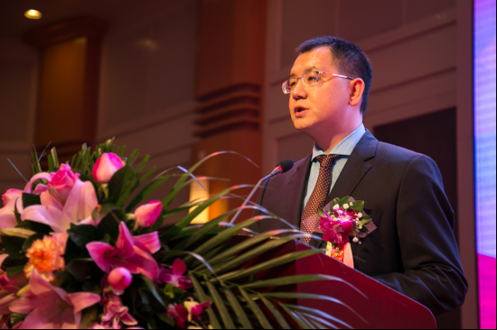 东莞市商务局何跃沛局长向东莞市代代红木家具有限公司、首创证券公司东莞营业部、东莞市润华光电有限公司颁发东莞市潮汕商会2015年度突出贡献奖。