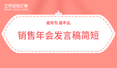 困苦能孕育灵魂和精神的力量。一般在正常演讲活动开始前,我们必然要将自己的发言做个整理。演讲稿可以避免临场斟酌词句,你知道写好演讲稿要注意哪些技巧吗?小编通过努力,整理了“销售年会发言稿简短1000字(精选6篇)”,供大家参考,希望能帮助到有需要的朋友。