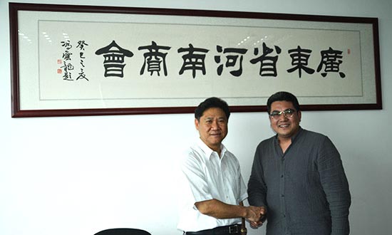 广东省河南商会秘书长朱加富与江苏省河南商会常务副会长,扬州河南商会会长肖建权合影留念 中国网杨梓铭摄