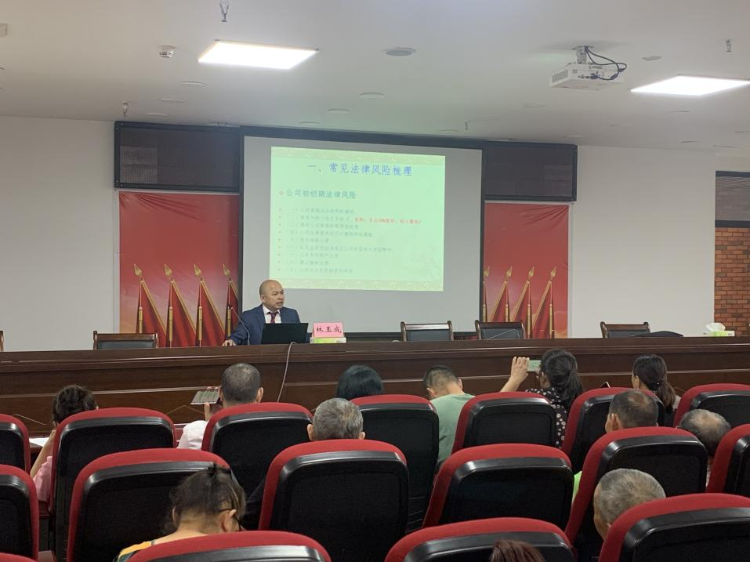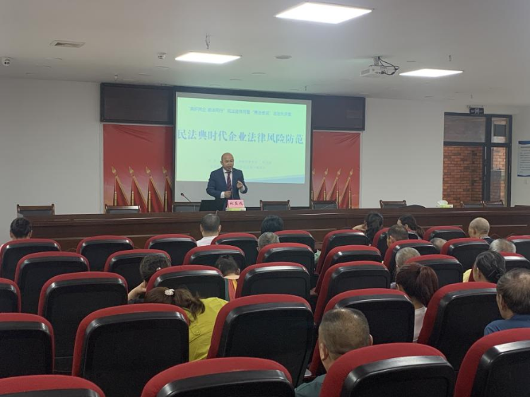 为优化法治化营商环境,提升企业家的法治素养和风险防范意识,5月28日上午,渝北龙兴镇商会组织开展“典护民企 渝法同行”民法典宣传月暨“善法者说”法治大讲堂活动,邀请重庆公孝律师事务所林玉成主任就《民法典时代企业法律风险防范》做了专题讲座,商会30余名民营企业家参加。