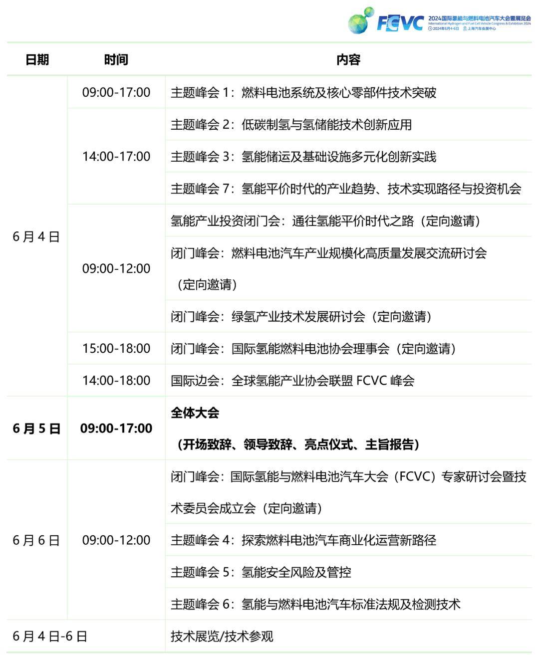 由中国汽车工程学会与国际氢能燃料电池协会共同主办的“2024国际氢能与燃料电池汽车大会暨展览会(FCVC 2024)”将于6月4-6日在上海汽车会展中心召开。大会将以“聚力创新 氢动未来—坚定推动氢能与燃料电池汽车高质量发展”为主题,大会包含:1场全体大会,7场主题峰会及5场同期会议,大会将发布150+场演讲报告,预计有1,200+参会嘉宾共同参与。