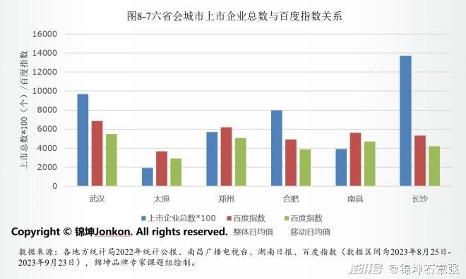 通过对城市的规上企业总数、上市企业总数与城市品牌知名度做分别对比,可看出企业品牌并非仅要求企业规模越大越好。在图8-8中,规上企业总数高的城市,城市品牌知名度可以很低,规上企业总数少的城市,城市品牌知名度可以很高。