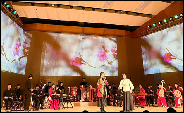 本场开幕式晚会上演的潮乐潮剧,突出“红色经典名段”与“潮剧名家献唱”汇聚。整场晚会的音乐由潮乐名家赵泽华老师进行创作编配,以家喻户晓的《红梅赞》为晚会主旋律,意以彰显红岩精神,弘扬红梅品格。演出开始,首先由汕头精艺潮乐团演奏的潮州大锣鼓《盛世潮音》开启了激荡人心的序幕,接着潮剧名家张怡凰的《红梅赞》、郑健英的《蝶恋花》与许淑婉的《白毛女》,青年演员陈立君、林外贸、谢蓉、陈水木、林雯丽分别带来《万山红》《沙家浜》《红灯记》等潮剧“红色经典”名作中的原创选段演唱,博得满堂喝彩。今年“红色经典”选段节演备受关注,让观众领略到“红色经典”潮剧名作的精华之篇,共怀激情歌颂党的百年华诞。