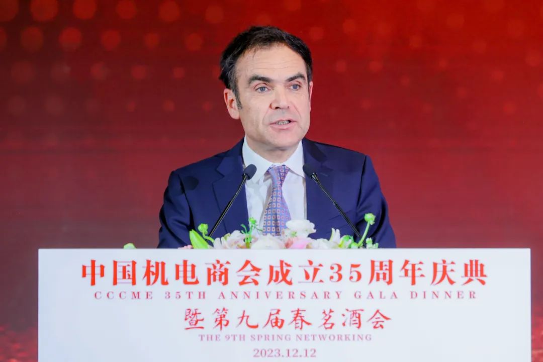 法国电力集团副总裁兼中国区总裁、中国法国工商会副会长傅楷德在致辞中表示,35年来中国机电商会一直是连接中国、法国和欧洲联盟之间经贸活动的重要桥梁。中法两国即将迎来建交60周年,法电集团作为中法企业家委员会低碳能源工作组的法方主席单位,将密切加强与机电商会及其会员企业合作,持续助力两国能源建设和绿色低碳转型。