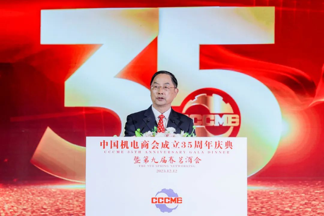 中国商务部原副部长蒋耀平在致辞中对商会成立35周年表示祝贺。他回顾了商会成立背景和在外经贸促进体系中的定位,对商会35年来为促进机电行业的发展、帮助机电企业开拓国际市场、搭建中外交流合作平台所取得的卓越成绩给予了充分肯定,同时希望商会不断学习、勇于拼搏,以推动中方企业参与全球合作为目标,拓展全球化视野与战略眼光,不断完善服务体系,继续发挥独特优势,成为中国深化改革、高水平对外开放进程中一支不可替代的力量。