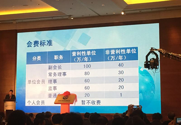 另据中国互联网金融协会公布的会员年费表格,总体分成营利性单位和非营利性单位收取。营利性单位:副会长单位为100万元、常务理事80万、理事60万、监事60万、普通会员20万;非营利单位:副会长单位40万、常务理事30万、理事和监事均为20万,普通会员1万元。