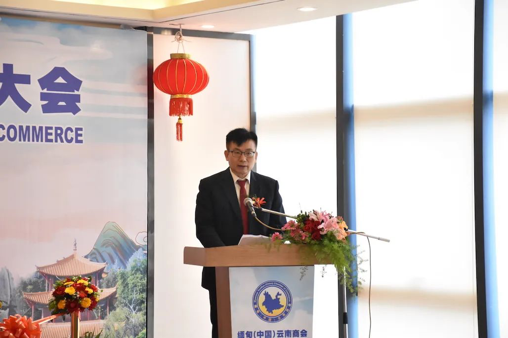 缅甸(中国)云南商会会长谢明贵首先致辞,“我们将在中国驻缅甸大使馆的领导下,热爱祖国,拥护中国共产党领导,在异国他乡维护祖国的荣誉,带领商会为在缅的云南企业和云南人服务,架起云南各级政府与在缅云南人之间的桥梁。致力搭建起中国驻缅大使馆、云南各级政府与云南在缅企业与个人沟通交流平台,商会也将尽可能关爱与帮助身边的缅甸员工和困难群体,为他们提供力所能及的帮助。”