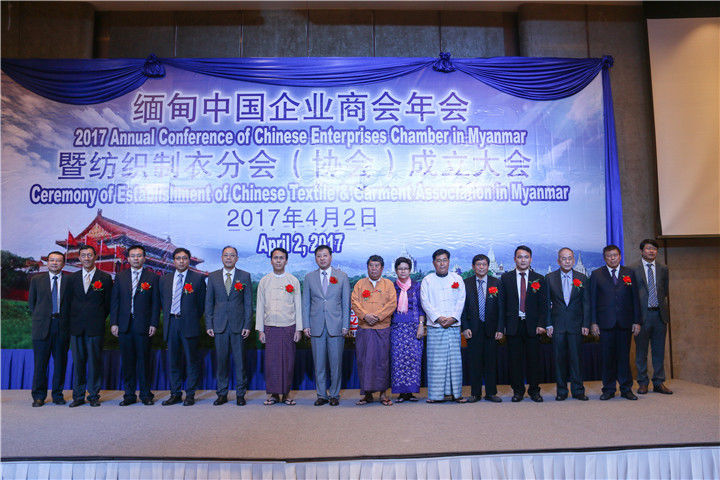 4月2日,缅甸中国企业商会年会暨纺织制衣分会成立大会在仰光美利亚酒店隆重举行。中国驻缅甸大使洪亮、仰光省首席部长吴漂民登出席并分别致辞,仰光市市长吴貌貌梭、缅甸中国企业商会会长刘颖以及仰光省政府、中资企业、缅华社团、中缅媒体代表等300余人参加。