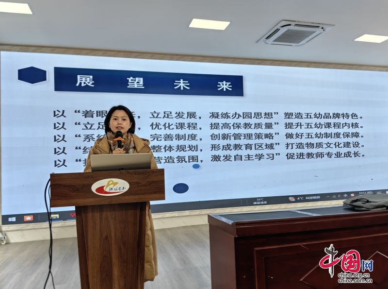 会议中,园长范熙总结了过去一年取得的成果,对全体教职工的辛勤付出给予肯定,鼓励大家笃定脚步,展望未来。同时也提出了新的工作要求:希望全体教职工团结互助,发扬脚踏实地的工作作风,关爱幼儿、尊重家长,不断学习、提高专业素养,以更加饱满的状态迎接下学期。
