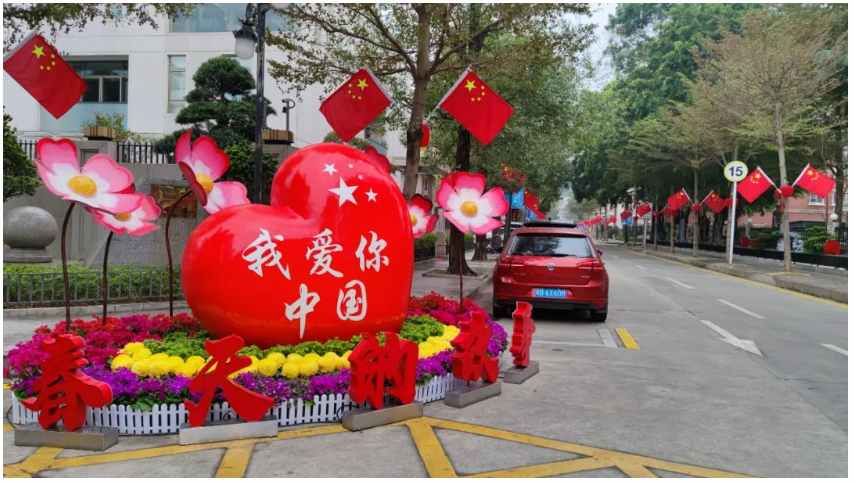 在怡景花园小区,一颗红彤彤的上书“我爱你中国”的爱心装扮吸引了不少业主打卡拍照。一盏盏代表传统文化的灯笼,一件件与所有业主和深物公司共同走过近43年美好岁月的设备呈现,引发业主共建美好家园的强烈共情,洋溢出中华儿女代代传承的家国情怀。