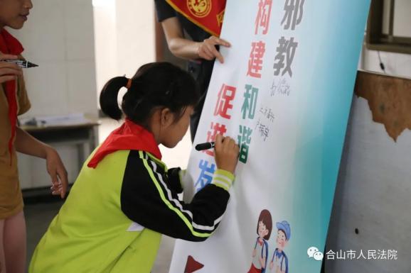 课后,同学们纷纷在法治宣传展板上签下名字,以表遵纪守法的决心。