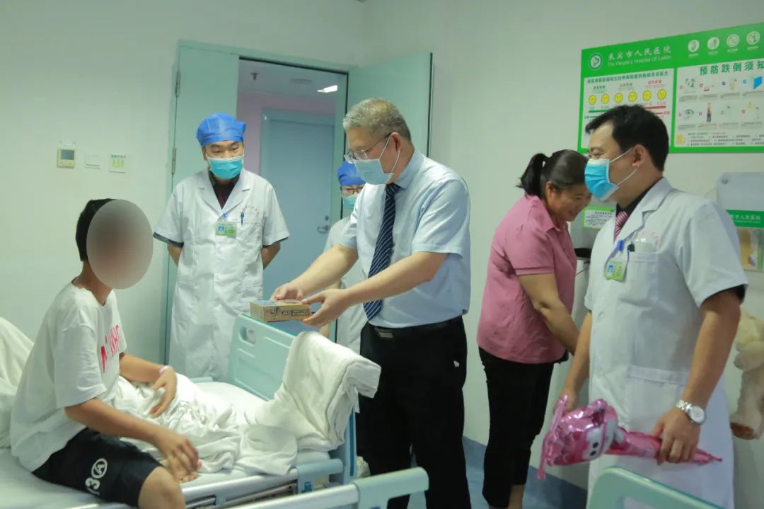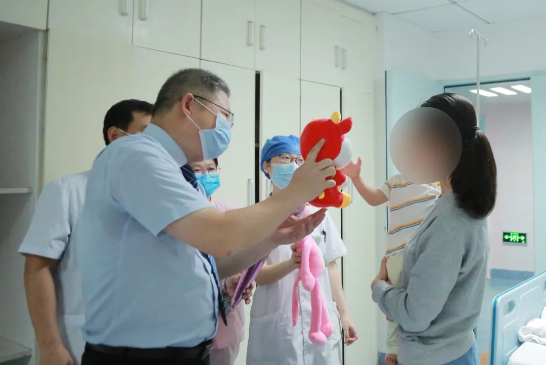 6月1日上午,院长陈义夫来到小儿内科普通病房和PICU儿科重症监护室看望慰问患病儿童,给他们送去了节日的祝福,详细了解了孩子们患病情况,并与医护人员一同将气球、玩具、布娃娃等精心准备的礼物送到他们手中,祝福各位小天使们早日恢复健康,快快乐乐成长。活动现场暖意浓浓,也得到了家长们的一致赞扬。