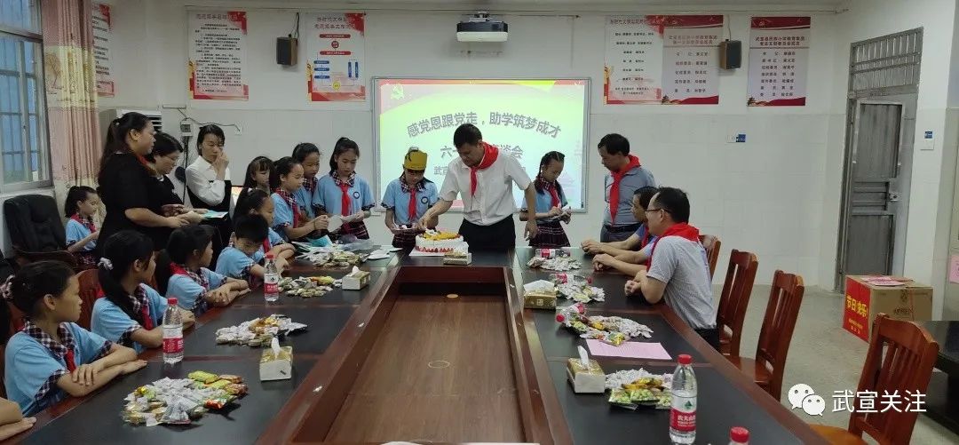 座谈会上,吴孝斌还与师生们共同进行诗歌朗诵,并与同学们一起切蛋糕欢庆儿童节。