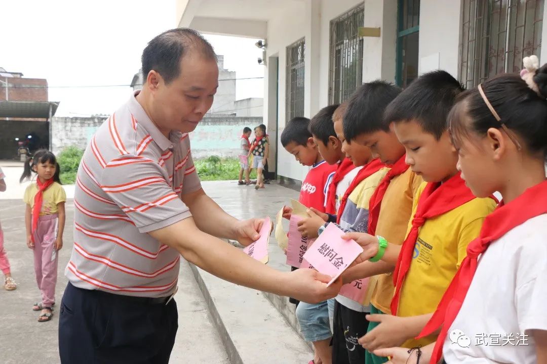 在武宣县实验小学教育集团总部校区,县委书记杨世爵给小朋友们送上节日的慰问品、慰问金和节日的祝福,并向为孩子们健康成长付出辛勤劳动的广大教师表示崇高的敬意。