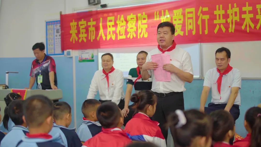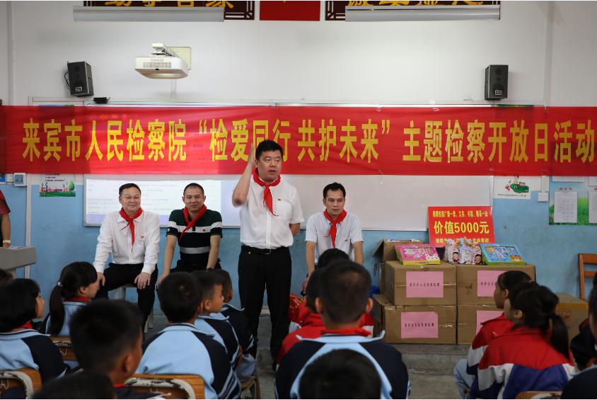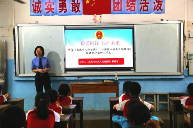 为贯彻落实今年6月1日正式实施新修订的《中华人民共和国未成年人保护法》与《中华人民共和国预防未成年人犯罪法》,在6月1日儿童节当天,团市委与兴宾区检察院走进五山镇周罗教学点,以一场普法讲座、“云”游检察院的新形式开展了一场别开生面的“检爱同行,共护未来”主题送法进校园活动。