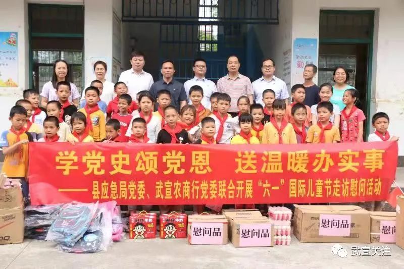 5月31日,在“六·一”国际儿童节来临前夕,武宣县应急管理局联合武宣农商银行到桐岭镇祥龙小学、幼儿园对留守儿童、重残重病儿童、孤儿等困难儿童开展走访慰问活动,为2所学校送去慰问金和节日慰问品,在节日前为孩子们送上浓浓的祝福。