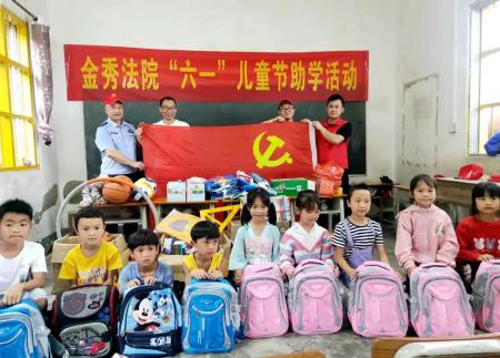 六月的鲜花将要绽放,在“六一国际儿童节”的当天,金秀瑶族自治县人民法院党组成员、政治部主任秦卫华带领法院干警代表,深入三角中心校、三角乡小冲小学和三角乡江燕小学,开展“六一”儿童节助学活动。