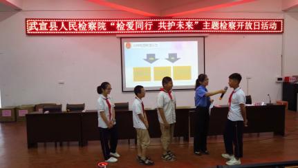 5月31日上午,武宣县人民检察院组织检察干警到武宣县实验小学教育集团城东校区开展以“检爱同行 共护未来”为主题检察开放日活动。通过进校园开展检察开放日活动,切实保护好未成年人的成长环境,保护未成年人的身心健康,呵护祖国的花朵健康成长。