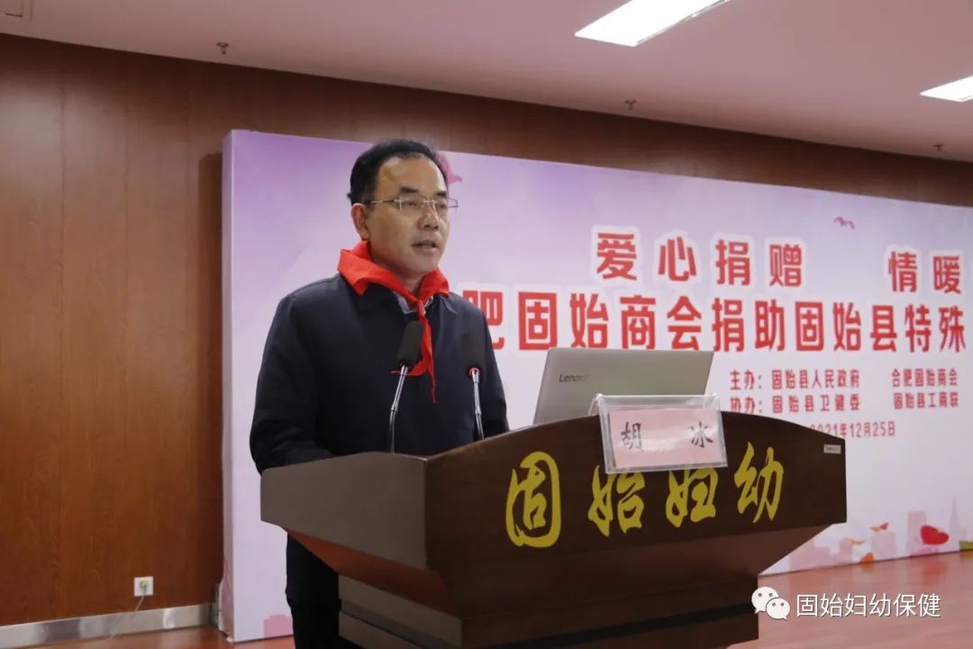 2021年12月25日上午,在固始县妇幼保健院第一会议室举行了合肥固始商会捐助固始特殊儿童活动。县委常委、统战部部长胡冰,副县长冯晓,合肥京东方医院党委书记、院长何仿,合肥固始商会会长陈勋祥,商会秘书长杨永成,监事长孙家林和县工商联、县卫健委等领导出席了活动。同时,合肥京东方医院的专家深入我院病区一线科室进行义诊、查房、疑难重症会诊等。