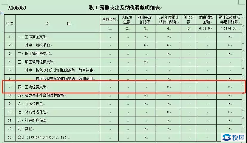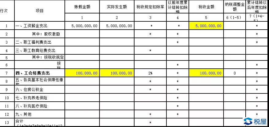 2、实际发生额分析填报纳税人“应付职工薪酬”会计科目下的工会经费本年实际发生额,某公司10万全额拨付给工会,所以,这里的实际发生额应该填写10万。